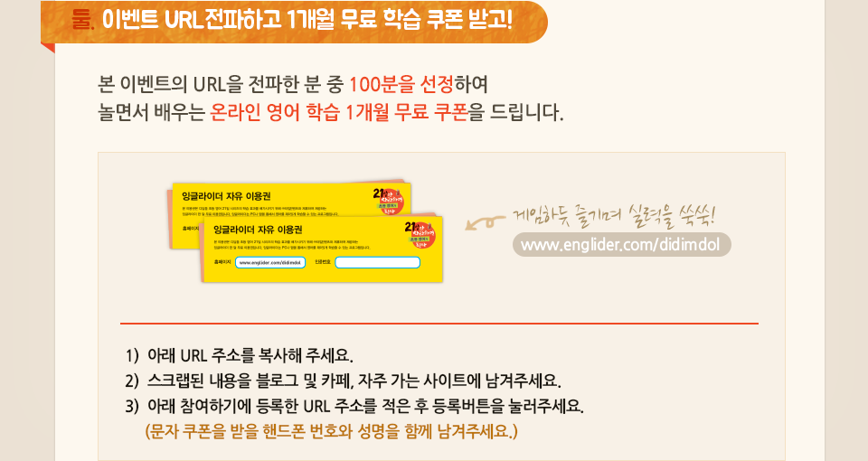 등록한 URL주소, 핸드폰 번호, 성명을 적으신 후 등록 버튼을 눌러주세요.